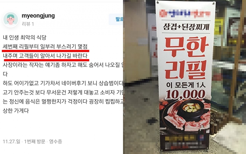 이게 자만추지ㅋㅋㅋ 이게 자만추지ㅋㅋㅋ 사장잘못 vs 진상이다 논란 여러분들의 생각은? 요약) 남자 4명에서 8번정도 리필함 사장이 대놓고 안좋아함 리필할때마다 손바닥만한고기 한개줌 음식 남기면 벌금이라고 엄포함 손님빡쳐서 영수증 4개 받아서 리뷰 손님이 진상 vs 사장이 진 gog.k-idola.com 공유하기 게시글 관리 재미난블로그 저작자표시 (새창열림) 요즘뜨는뿜