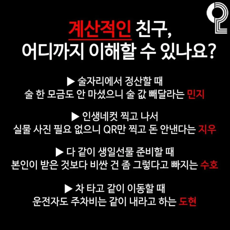 계산적인 친구중 이해 가능 범위?.jpg 계산적인 친구중 이해 가능 범위?.jpg 그래도 만약 민지가 안지도 안 먹었다면 그건 이해할 수 있어...그런데 나머지는 진짜 노답이다. ㅋㅋ 저런건 그냥 바로 손절쳐야짘ㅋㅋ 공유하기 게시글 관리 재미난블로그 저작자표시 (새창열림) 요즘뜨는뿜