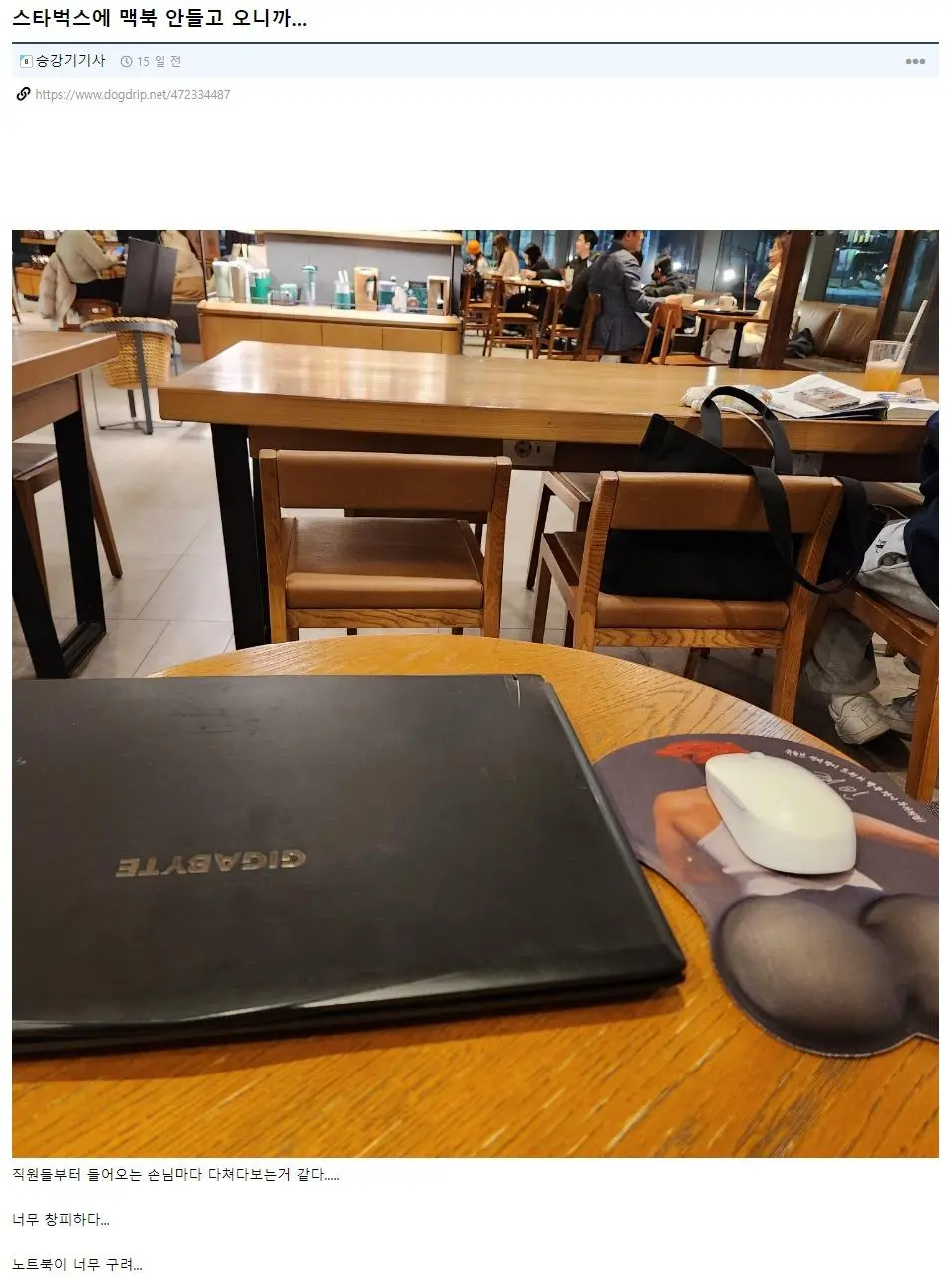 스벅갈때 맥북 챙겨야 하는 이유 스벅갈때 맥북 챙겨야 하는 이유 내가 볼때는 노트북이 아니라....패드가 문제인거 같은데? 저런 패드는 도대체 어디서 구하노..;;; 공유하기 게시글 관리 재미난블로그 저작자표시 (새창열림) 요즘뜨는뿜