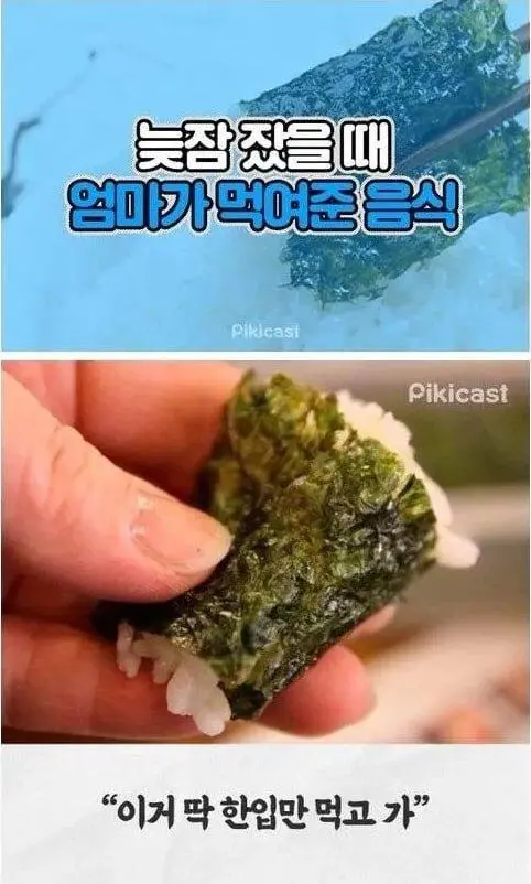 늦잠 잤을 때 엄마가 먹여준 추억의 음식. jpg 늦잠 잤을 때 엄마가 먹여준 추억의 음식. jpg 아 진짜...어렸을때 학교갈때면 항상 5분만 더 자겠다고 아침밥을 걸렀는데 그때마다 엄마가 김에도 남은 반찬 넣고 말아 준거 먹는게 개꿀맛이었음 공유하기 게시글 관리 재미난블로그 저작자표시 (새창열림) 요즘뜨는뿜