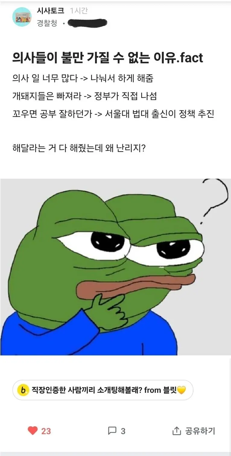 의대증원의사들이 불만 가질수 없는 이유.jpg 의대증원의사들이 불만 가질수 없는 이유.jpg 추천하는뿜 자신이 대머리가 아님을 증명하는 아버지 솜털같이 머리카락이 있으시니 대머리는 아니신걸로 판정 ㅋㅋ 그런데 저걸 생각하신 아버지도 정말 유쾌하시고 센스가 넘치신다 ㅋㅋㅋ goog.k-idola.com 공유하기 게시글 관리 재미난블로그 저작자표시 (새창열림) 요즘뜨는뿜