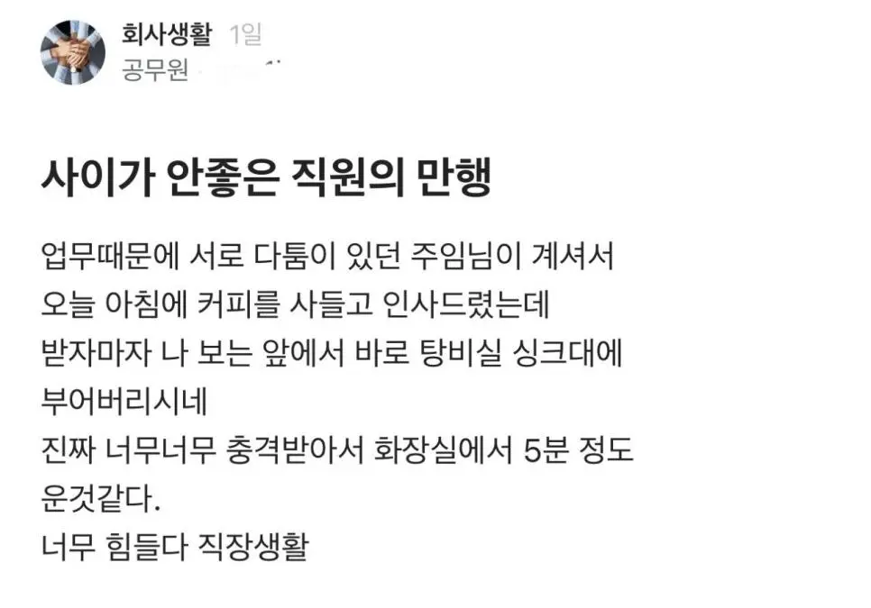 사이가 안좋은 직원의 만행 사이가 안좋은 직원의 만행 근데 무슨일이 있었는지 처음부터 모르기때문에 머라고 말을 하기는 머한데..무작정 설마 저랬을까? 공유하기 게시글 관리 재미난블로그 저작자표시 (새창열림) 요즘뜨는뿜