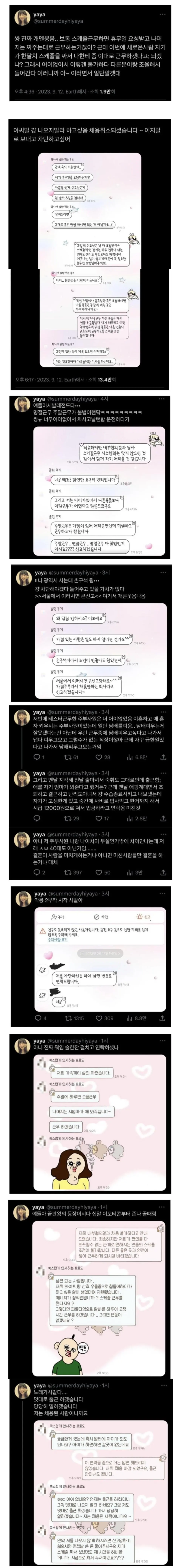 두고두고 회자되는 올리브영 레전드 알바생 두고두고 회자되는 올리브영 레전드 알바생 내가 볼때 이 정도면 산후우울증이 아니라 그냥 병인거 같은데...조속한 입원한 치료가 급할거 같다. 그리고 스케줄 근무가 언제부터 명절이나 일요일게 근무하는게 불법이었냐 ㅋㅋ ㅋ그러면 전국에 소방서,경찰,병원에서 일하시는 모든 분들은 다 불법이겠네? 공유하기 게시글 관리 재미난블로그 저작자표시 (새창열림) 요즘뜨는뿜