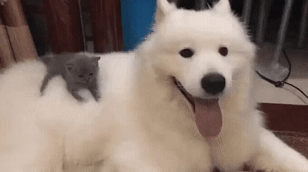 비록 사모펀드라고 오타를 내기는 했지만 사모예드 등에 아주 작은 고양이가 올라가 있죠. 사모예드가 숨을 헐떡이면서 작은 진동에도 아깽이는 그 진동을 온몸으로 느끼고 있는데요. 사랑스러운 눈빛으로 아깽이를 바라보는 사모펀드 아니.. 사모예드가 너무 사랑스럽습니다.