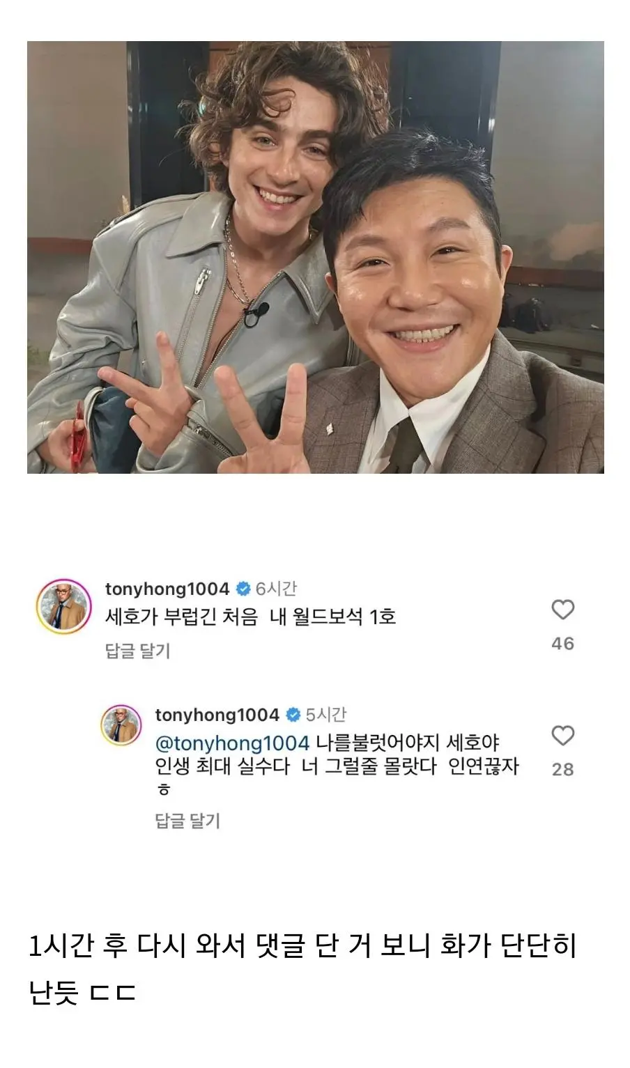석천이형이 좋아하는 티모시라서 그런거 같네요